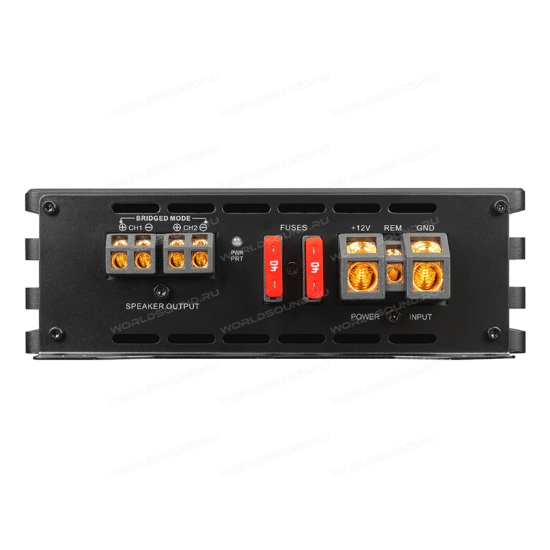 Двухканальный усилитель необходим для подключения пары динамиков либо одного сабвуфера в мостовом режиме. Применяются усилители AB класса, но и D класс встречается очень часто, которые используется для экстремальных громких проектов. Важной характеристикой усилителей является номинальная выходная мощность. Усиление качества звука усилителем, на прямую зависит от коэффициента гармонических искажений, чем ниже тем лучше.