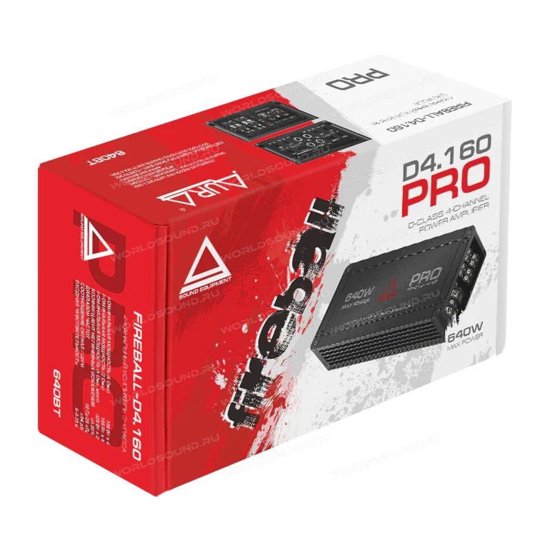 Широкополосный четырехканальный усилитель Aura серии Fireball. Компактный корпус и стабильная работа при нагрузке 2 Ом. Высокоскоростной блок питания Mosfet с эффективной защитой.