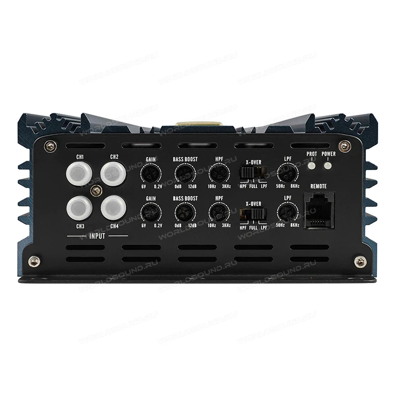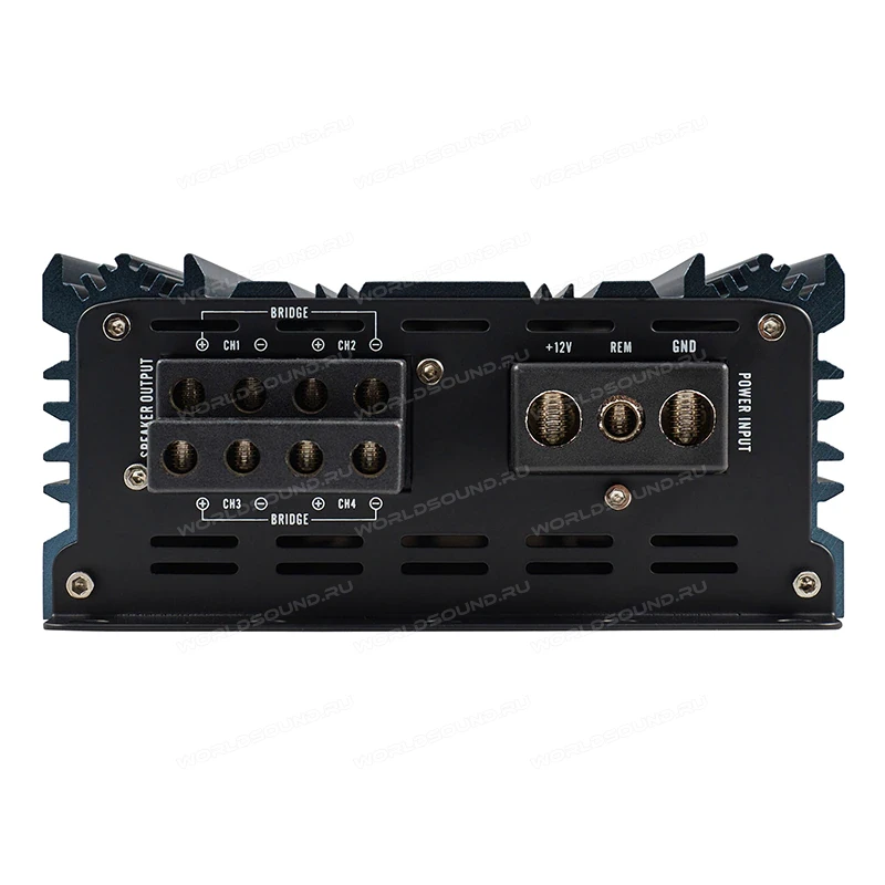 Четырехканальный усилитель необходим для подключения четырех динамиков либо двух динамиков и одного сабвуфера. Это самый распространенный автомобильный усилитель. Применяются усилители AB класса, но и D класс встречается очень часто, которые используется для экстремальных громких проектов. Важной характеристикой усилителей является номинальная выходная мощность. Усиление качества звука усилителем, на прямую зависит от коэффициента гармонических искажений, чем ниже тем лучше.
