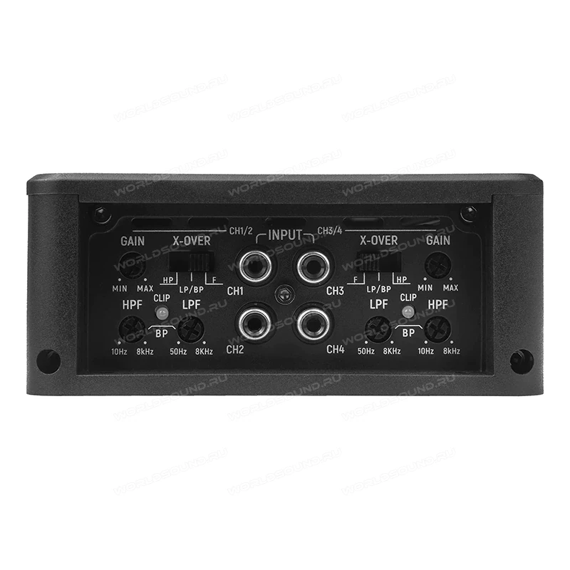 Четырехканальный усилитель необходим для подключения четырех динамиков либо двух динамиков и одного сабвуфера. Это самый распространенный автомобильный усилитель. Применяются усилители AB класса, но и D класс встречается очень часто, которые используется для экстремальных громких проектов. Важной характеристикой усилителей является номинальная выходная мощность. Усиление качества звука усилителем, на прямую зависит от коэффициента гармонических искажений, чем ниже тем лучше.