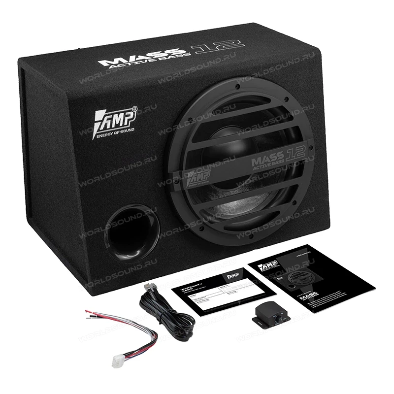 Активный сабвуфер, Фишка для подключения по высокому уровню (HI-INPUT), Выносной регулятор баса, Кабель регулятора баса , Инструкция, Гарантийный талон, Наклейка