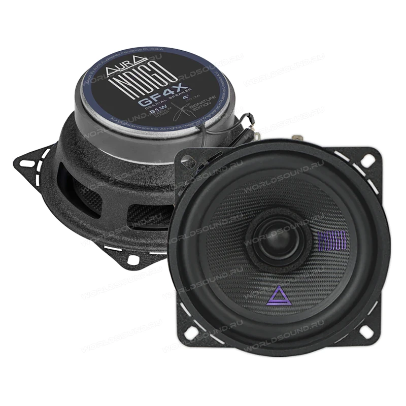 Двухполосная коаксиальная акустика серии Indigo от Aura. Качественный, объемный звук и насыщенность всеми частотами.