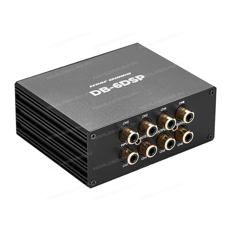 DB-6DSP обладает, как несложно догадаться, 6-канальным процессором и тремя парами RCA выходов для подключения усилителей. Во многом, ключевая задача данного устройства — собственно, преобразование сигнала с бортовой системы автомобиля, управление SQ или SPL аудиосистемами, установленными взамен штатных, с небольшим количеством усилителей.