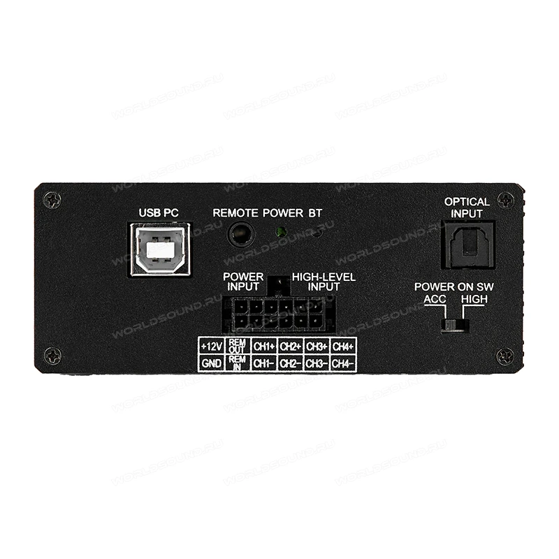 При этом, устройство обладает всеми необходимыми возможностями для настройки: поканальная настройка гейнов и задержек, возможность подмешивания сигналов из разных источников - на борту устройства есть высокоуровневый вход на 4 канала, 2 канала RCA, оптика, USB-аудио для владельцев Android. Поддержка управления с телефона на iOS и Android, а также подключение пульта управления DRC.