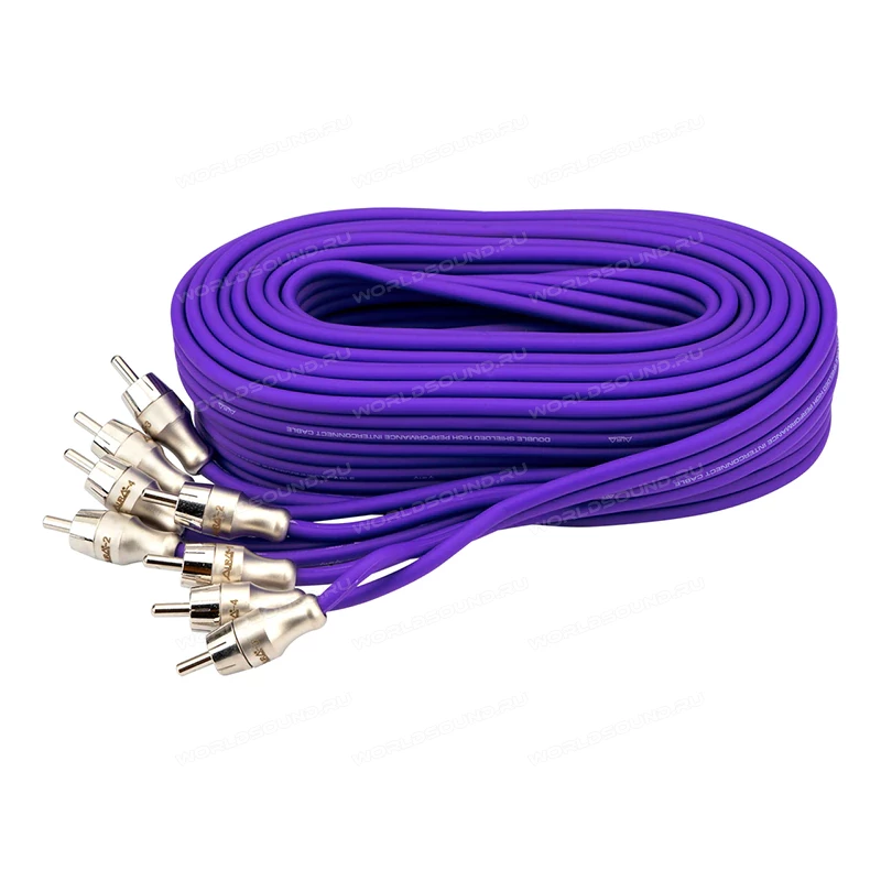 Четырехканальный межблочный коаксиальный RCA кабель от бренда Aura. Медный проводник. Двойной экран. Гибкая ПВХ-изоляция. Металлические никелированные разборные RCA коннекторы.