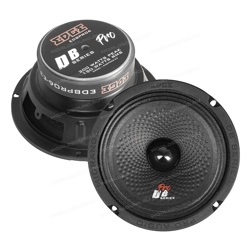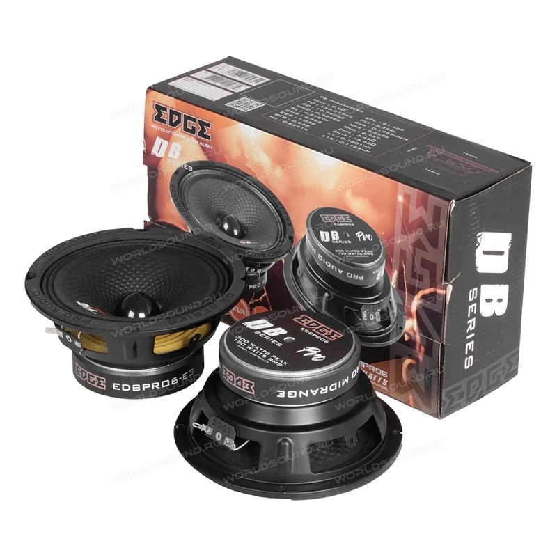 Громкие эстрадные среднечастотные динамики EDGE PRO DB. Акустика за свой бюджет громкая. Мощности на динамик достаточно 75 Вт, это определяет высокотемпературной катушкой 25 мм. Использовать в качестве мидбаса не рекомендуется.