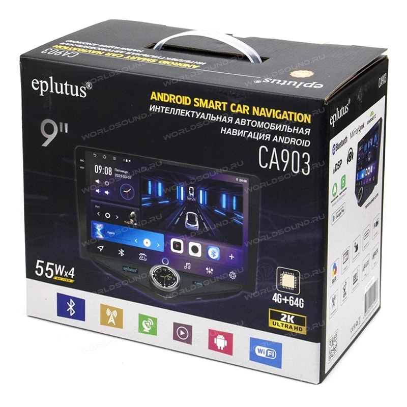 Связь c внешними устройствами Eplutus CA905 поддерживает посредством ОС Android 12.0 и Bluetooth v5.3.