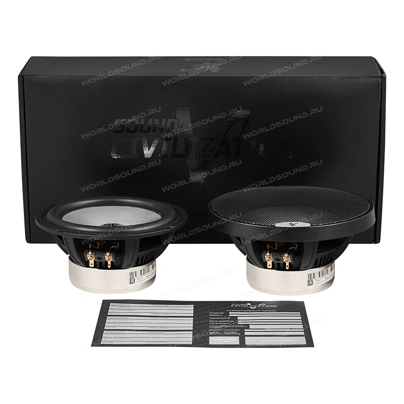 НЧ/СЧ SQ динамики Kicx серии Sound Civilization. Превосходные вариант как в двухполосную, так и в трёхполосную систему. Динамики собраны на прочной литой корзине, полностью лишённых собственных призвуков. Диффузор изготовлен из алюминия. Верхний подвес имеют специальную геометрию с плавным переходом от зоны крепления на диффузоре к зоне деформации, что устраняет отражения механических напряжений от края диффузора и снижает "подмешивание" к звучанию паразитных изгибных мод. Параметрами подвеса удалось добиться низкой резонансной частоты при сохранении малого веса подвижных систем, благодаря чему динамики способны на максимально точное воспроизведение, как в области нижних частот, так и в области средних частот.
